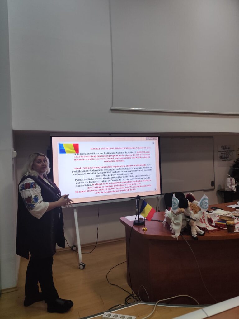 În deschiderea evenimentului, Prof. Maria Petrescu, cadru didactic al disciplinei nursing, a prezentat momente esențiale din istoria Marii Uniri de la 1918. Elevii au aflat atât informații cunoscute, cât și detalii mai puțin întâlnite în manuale, despre contextul istoric, liderii Unirii și evoluția României moderne. Prezentarea a oferit o perspectivă clară asupra importanței acestei zile pentru generațiile de astăzi.